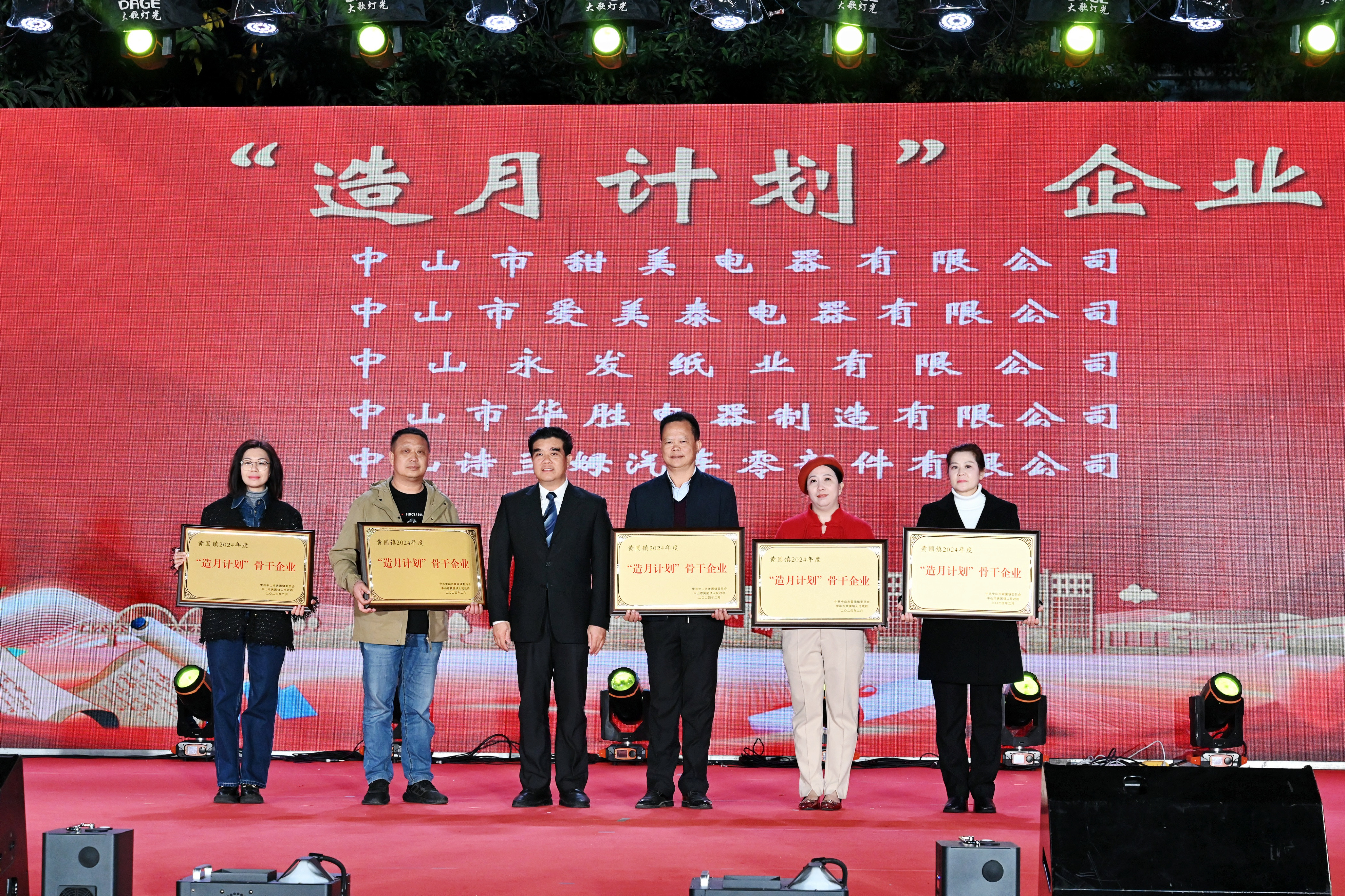 同时,甜美公司还荣获《“造月计划”骨干企业》纪念牌匾。2024年,黄圃镇为了更好地鼓励企业提质提效,黄圃镇党委、政府决定实施“造月计划”和“繁星计划”,11家“造月计划”骨干企业在晚会上获颁牌匾。黄圃镇将继续全力支持企业做创新的主角,“一企一策”助力骨干企业发展。
