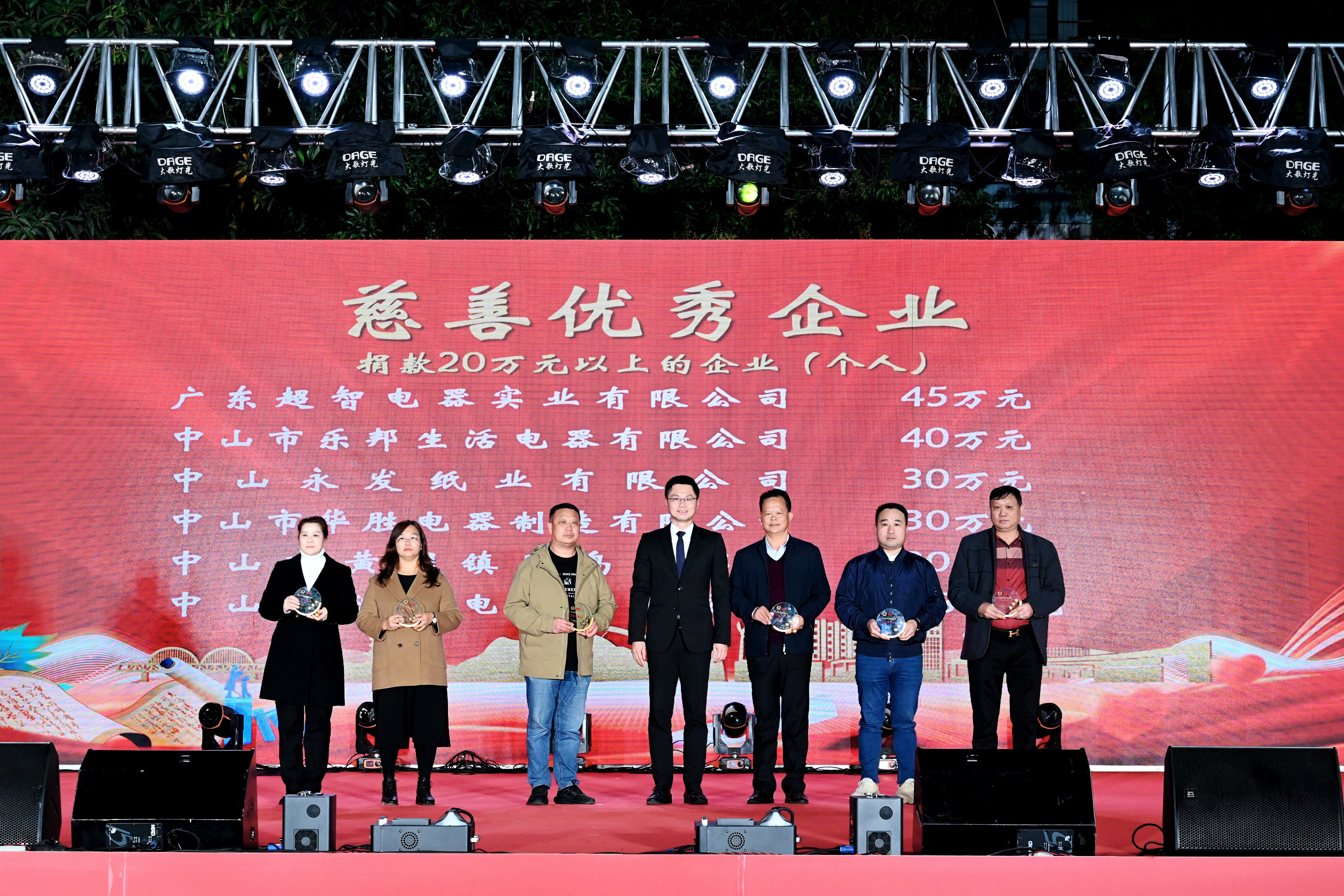 近日,黄圃镇中心广场张灯结彩,喜气洋洋,一场别开生面的活动在这里举行--贺元宵金色大地音乐会暨慈善万人行答谢晚会。在这个充满喜悦和感激的夜晚,甜美公司荣获两项殊荣:《慈善优秀企业》纪念杯和《“造月计划”骨干企业》纪念牌匾。